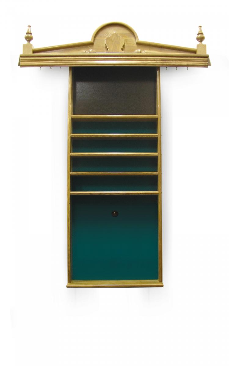 Модель настенная, предназначена для 5 киев, позволяет разместить треугольник, мелки, а также бильярдные шары. Материал массив ясеня. Есть возможность выбрать цвет из палитры Фабрики «Старт»